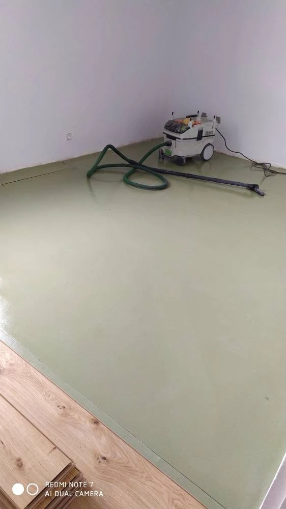 Pose de revêtement de sol par un ragréage avant la pose.