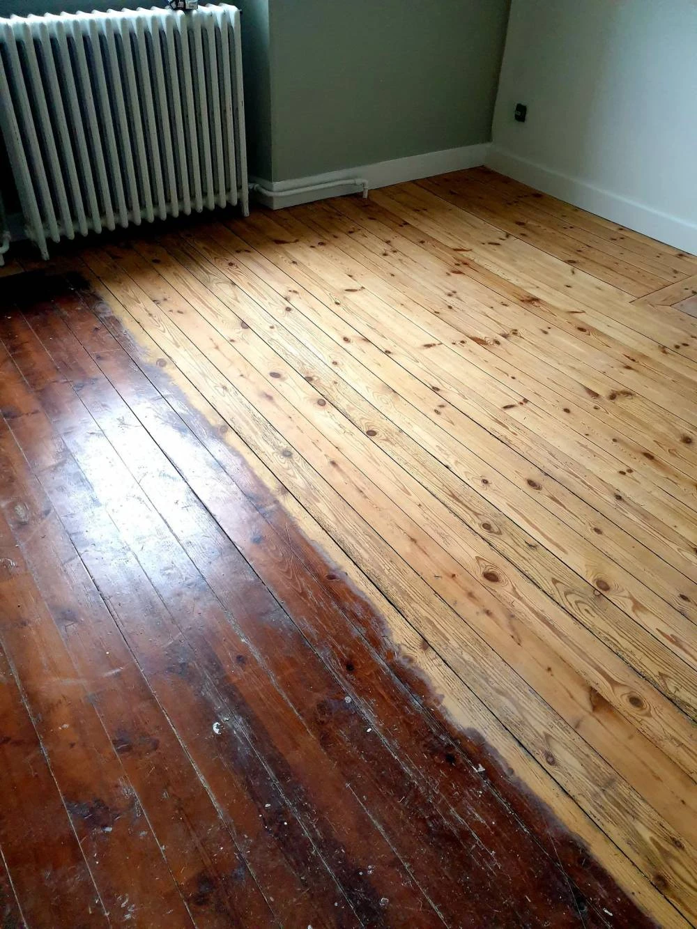 Le client voulait la rénovation de son sol par un ponçage et un vernis.